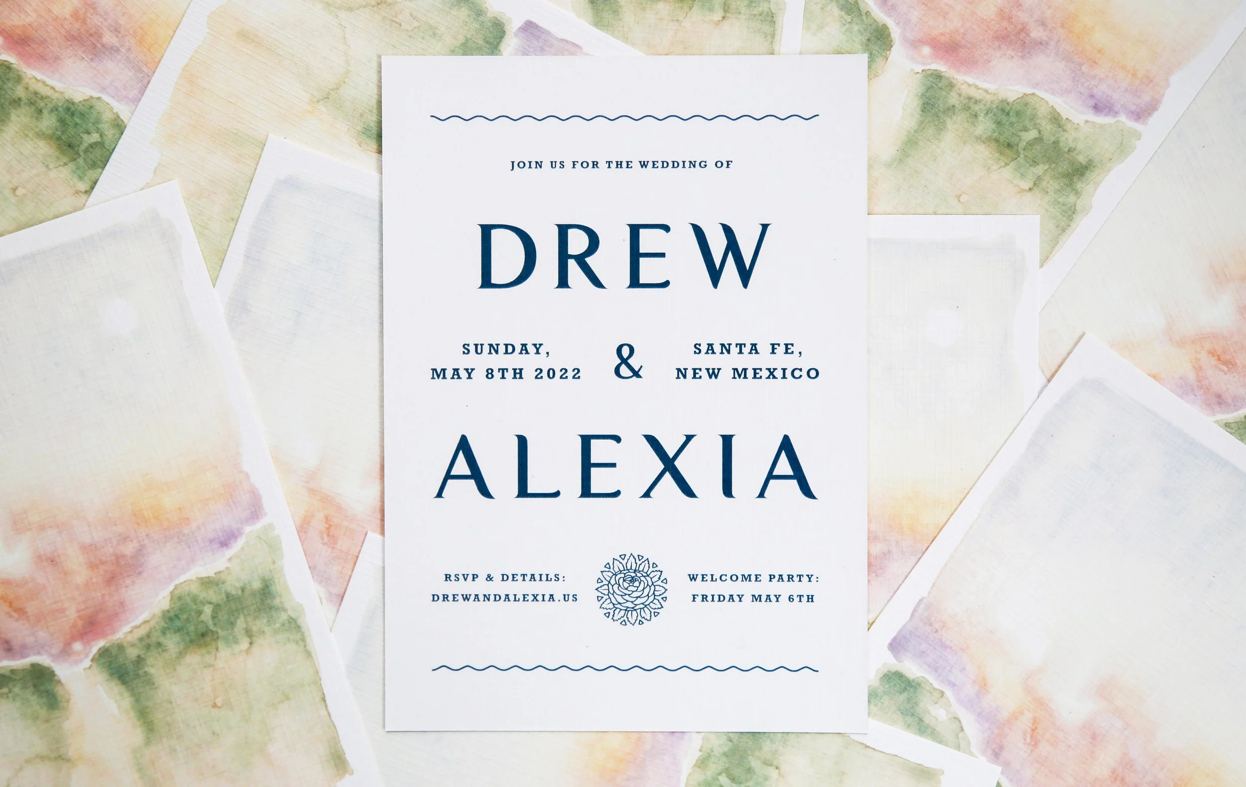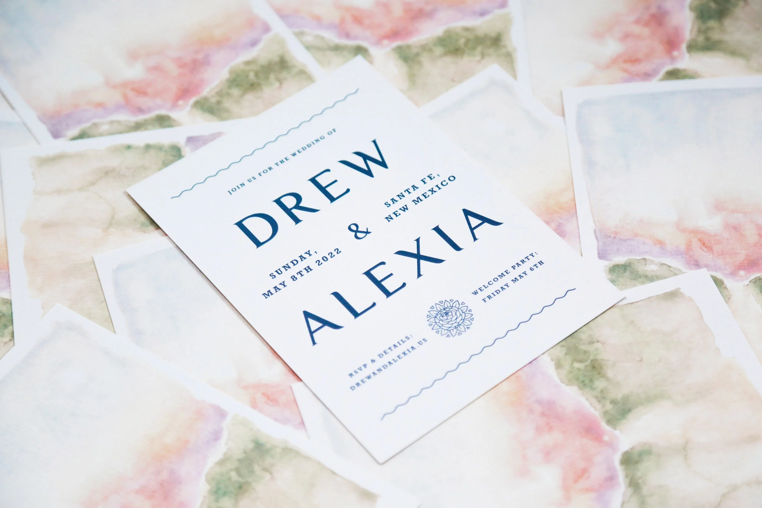 Created for a destination wedding weekend in Santa Fe, New Mexico, Emma created this loose watercolor inspired by the soft dreamy evening sky. It was painted from a reference photo shared by the couple from a walk of theirs in this area that feels sentimentally theirs. Letting the colors bleed and blend into each other they become connected and a cohesive, a calm moment captured on hot-press watercolor paper.