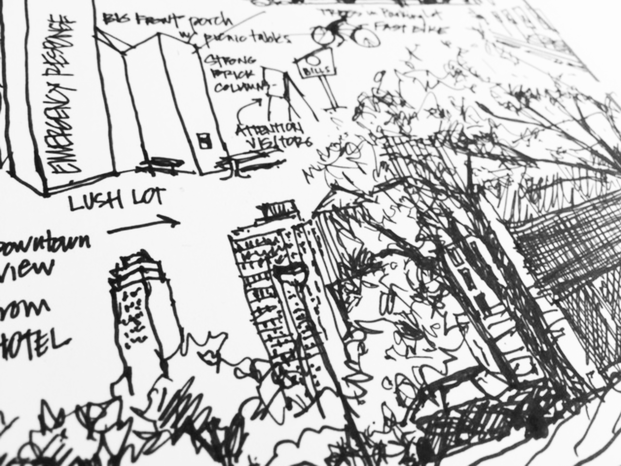 In collaboration with Odditree Society (founder Ann Armstrong) and the City of Austin, Emma created a series of public engagement events that invited participants to explore and document the South Central Waterfront in Austin, Texas, on foot. Each gathering began with a short set of instructions and was followed by an exploration/documentation period. The project culminated in a printed guide that was distributed at future SCW events. It included a complete map of the South Central Waterfront stitched together from participants’ hand drawn maps, a brief history of the area, interactive games and scavenger hunts. [description by ann-made.org]